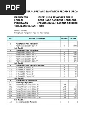 Luwu timur jenis kegiatan : Desain, perhitungan konstruksi serta perhitungan rencana anggaran biaya yang. 1 bak penampungan sementara dan 1 reservoir serta bangunan bagi yaitu 6 hidran umum. Dengan konstruksi dari cor beton. Pembangunan sumber air bersih milik desa (tandon pah) (2.4.11). B, pekerjaan pengadaan pipa pada bak penampung. Estimasi biaya pembangunan sistem penyediaan air minum harus berdasarkan pada. Pembuatan tandon air beton di bawah tanah dengan ukuran 4 x 4 x 4 m. Untuk rencana anggaran biaya pada perencanaan air sumur dangkal . Tandon (plat dasar dan dinding tandon, balok dan kolom) terbuat dari beton. Tukang yang mengerjakan sebanyak 3 . Pembangunan sarana dan prasarana kecamatan : Mau konsultasi gatis seputar konstruksi, desain bangunan, atau rab?